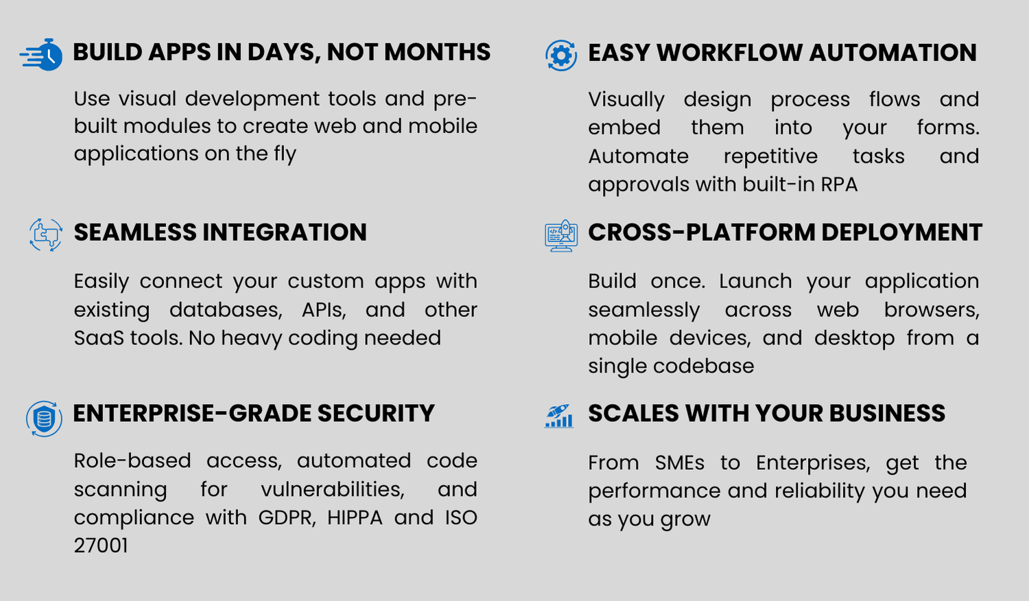 - Build Fast - Create and launch custom applications on the fly