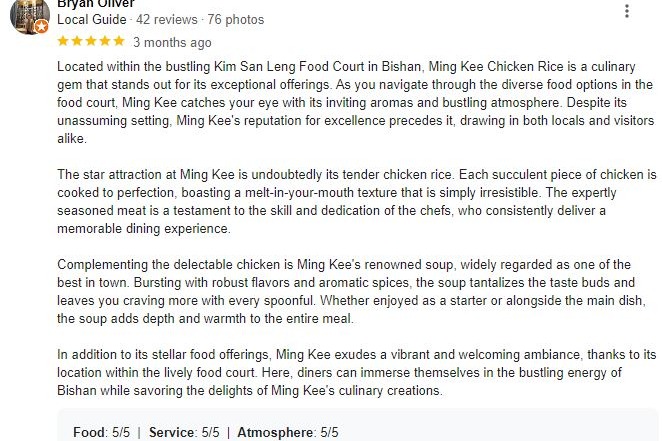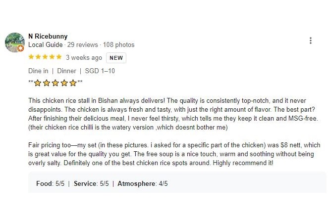 Fair pricing too—my set (in these pictures. i asked for a specific part of the chicken) was $8 nett, which is great value for the quality you get. The free soup is a nice touch, warm and soothing without being overly salty. Definitely one of the best chicken rice spots around. Highly recommend it!"
